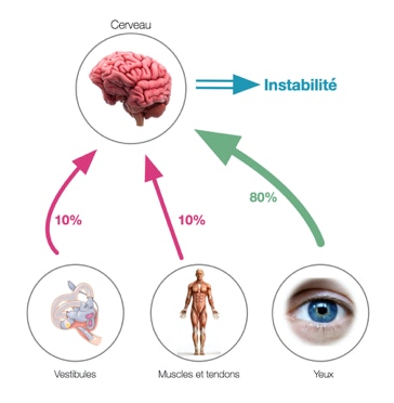 Ces 3 systèmes comportent un certain nombre de capteurs qui envoient des informations au cerveau. Grâce à ces informations, le cerveau est capable de connaître notre position dans l’espace et d’adapter, de corriger ou d’anticiper nos mouvements afin de garder notre corps en équilibre.