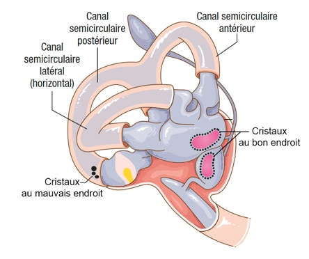 interne, viennent se loger dans les canaux semi-circulaires (la partie de l’oreille qui détecte les mouvements de rotations) et dérègle le système d’équilibre.